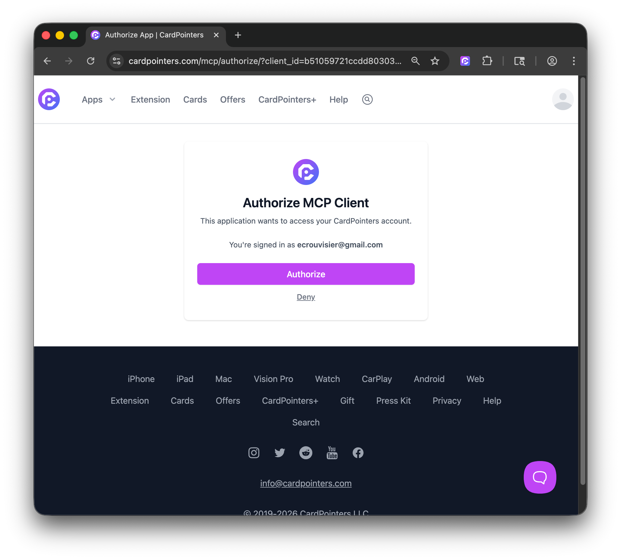 - You'll be redirected to the CardPointers site to log in (if you haven't already), then click on