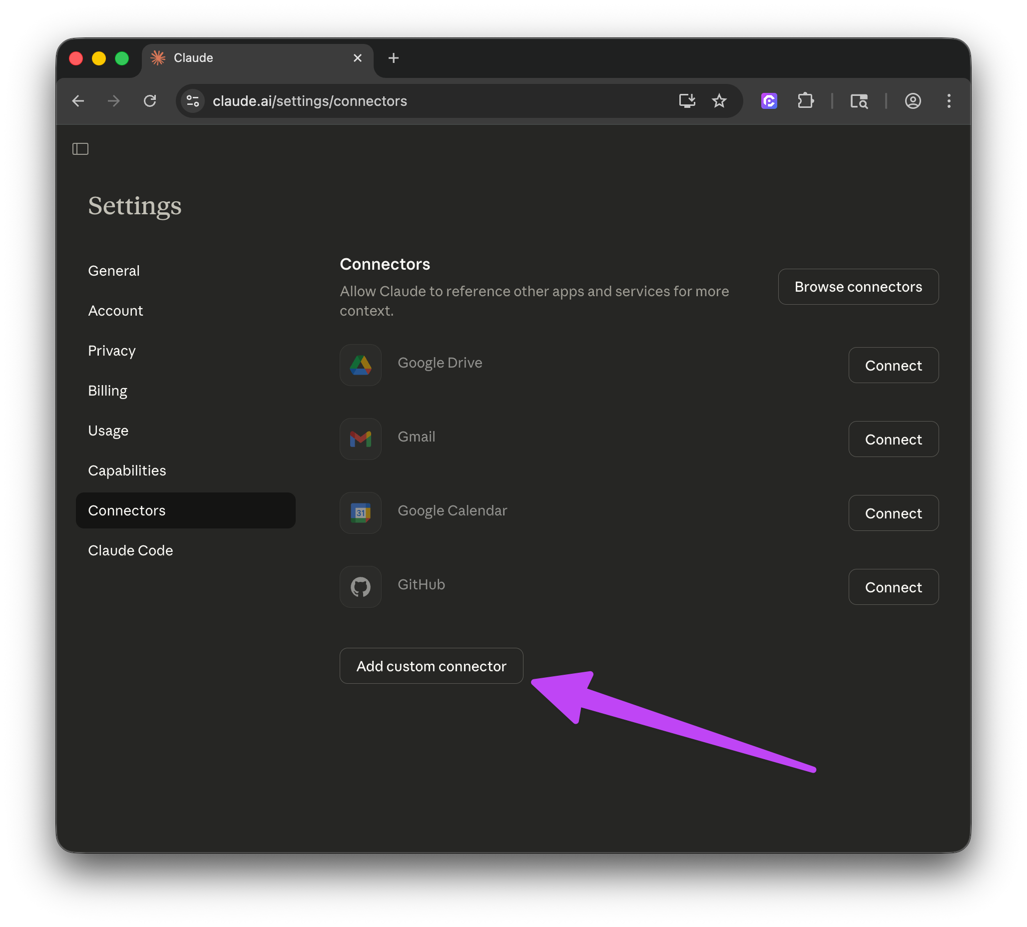 Add custom connector